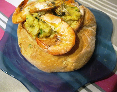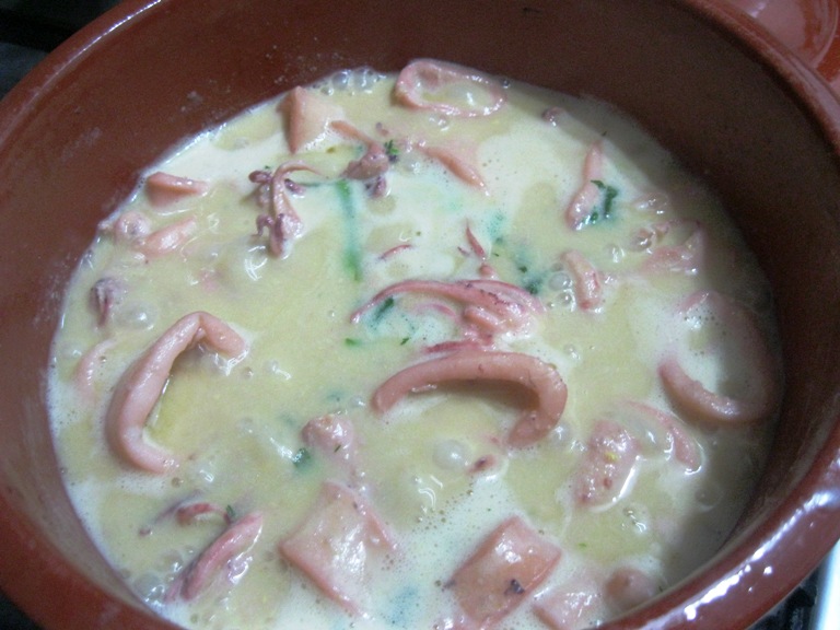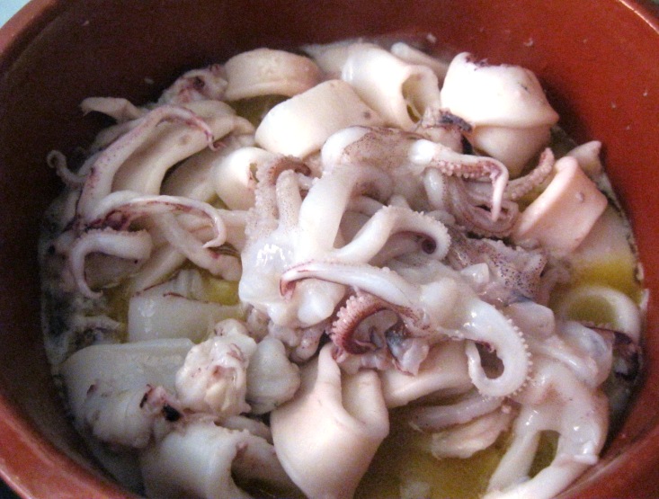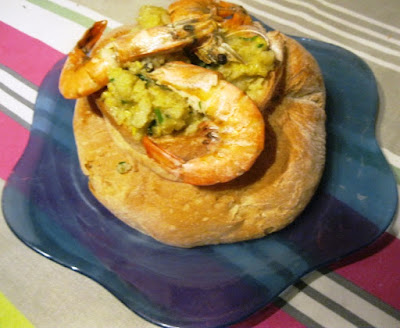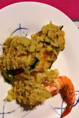 2 - Neste azeite quente fritei ligeiramente 18 camarões descascados e ainda uma mão cheia de cogumelos laminados,