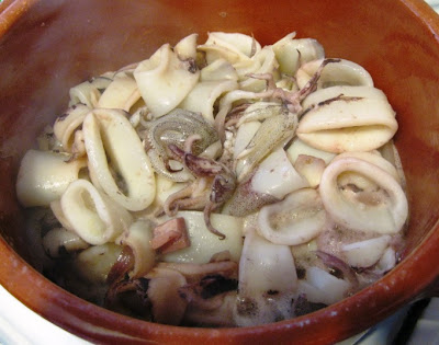 Envolvi bem e deixei que as lulas ficassem tenras, sobre lume brando.